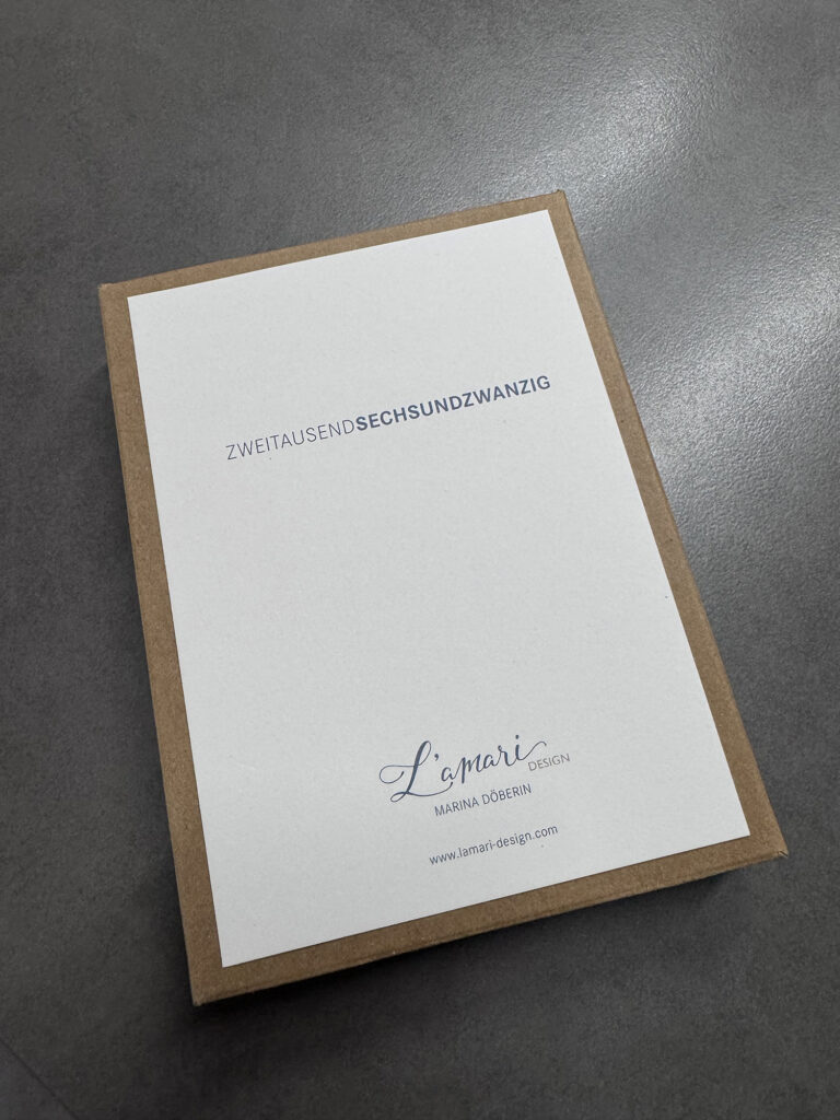 Aufgestellt wird der Kalender in einem genuteten Holzständer, hier sind verschiedene Hölzer vorrätig. Dazu noch eine schöne Schachtel zur Aufbewahrung und mit einem kleinen Überblick über die Motive. Ein toller Begleiter für das neue Jahr.